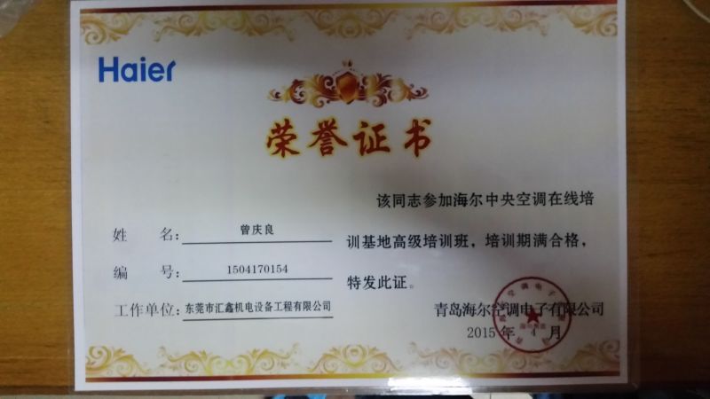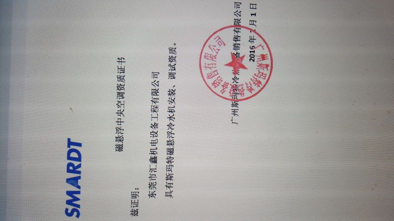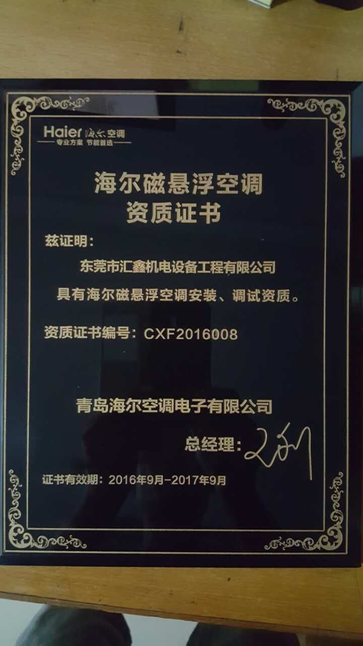 我司獲得“海爾磁懸浮空調資質證書”
